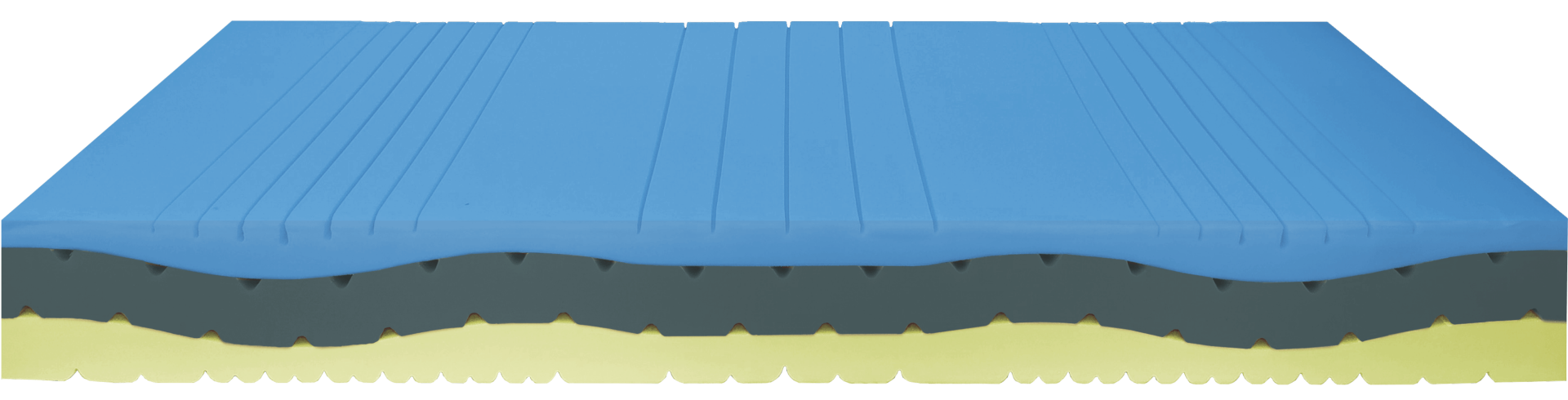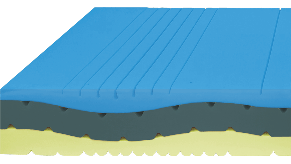 Massello interno in schiumato ad acqua foam plus, prodotto in tre strati dove abbiamo nella parte superiore uno strato di memory termosensibile sagomato a zone per alleviare la pressione del corpo adattandosi al peso. Nella parte inferiore un materiale con portanza elastica aggiunto allo strato sagomato centrale garantisce un confort ottimale, la giusta ergonomia ed un sano riposo. Nella parte centrale i fori trasversali garantiscono un passaggio d’aria indispensabile per la salute del prodotto.